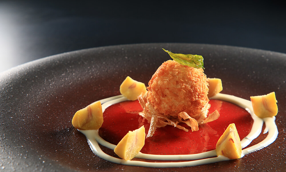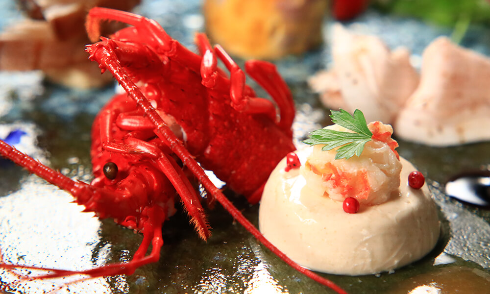 当館でお出しする食事は、素材一つからこだわり、お客さまの性別や年齢を考慮したメニューを考え、心を込めてお作りしております。 オーナーシェフが素潜りして獲った鮑、伊勢海老、千葉県南房総のブランド牛「里見伏姫牛」など、Auberge Suehiro(オーベルジュ スエヒロ)だから味わえるおいしさをお楽しみください。