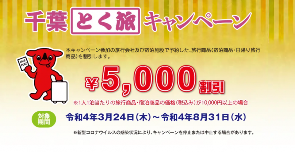 千葉とく旅キャンペーンのご利用期間が延長になりました。