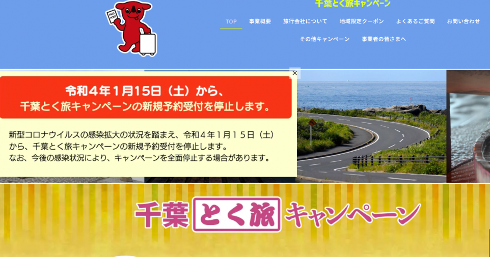 千葉とく旅キャンペーンの新規予約受付が停止になりました。